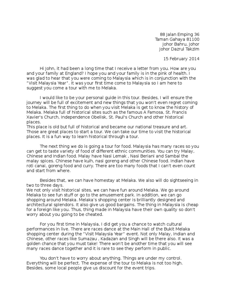 Informal Letter Writing Example 3 Contoh Surat Untuk Teman Sangat Pendek Dalam Bahasa Inggris English Admin Share. A wide selections of sample essays in both english and bahasa malaysia to be used as a. In a lovely village atmosphere with sprawling green rice fields aligned with the birds chirp tunable add the cool air in the morning.